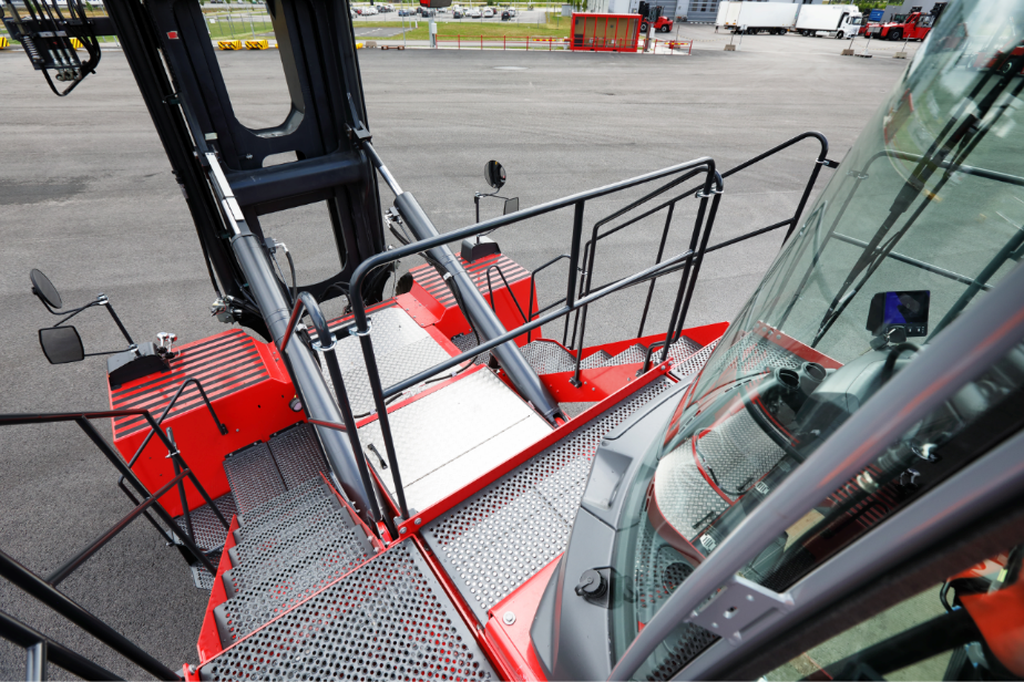 Your drivers will now be safer entering or exiting their Kalmar Top Loader, as there are more handrails and bars, plus all the climbing surfaces are non-slip. There are also steps on the right-hand side that can be used to enter or exit the cabin in emergencies.